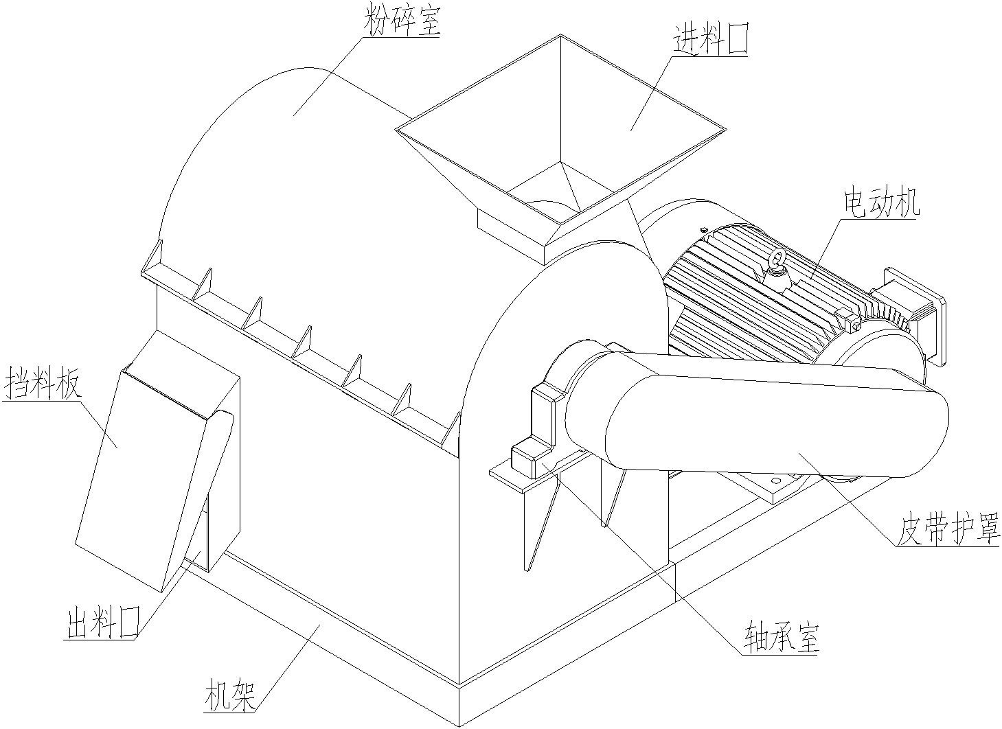 2.半濕物料粉碎機(jī)沒有設(shè)計(jì)篩網(wǎng)篩底,百余種物料都可以粉碎,絕不會(huì)堵塞。即使是剛從水里撈上來的物料也可以粉碎,不會(huì)因濕料粉碎而堵塞,造成電機(jī)燒壞,影響生產(chǎn)。