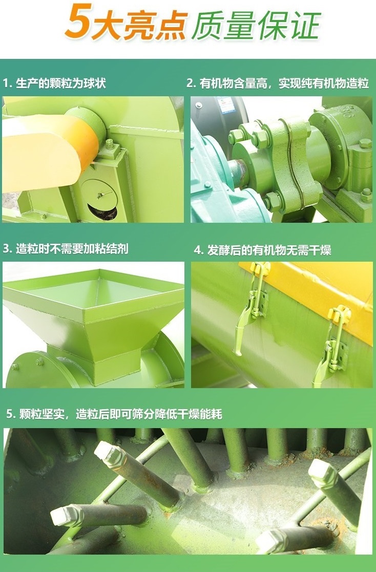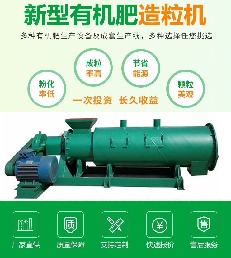1、有機(jī)肥攪齒造粒機(jī)利用高速回轉(zhuǎn)的機(jī)械攪拌力及由此產(chǎn)生的空氣動(dòng)力,使細(xì)粉狀料在機(jī)內(nèi)連續(xù)實(shí)現(xiàn)混合、成粒、球化、致密等過程,從而達(dá)到造粒的目的。顆粒形狀為球形,粒徑一般在1.5~4毫米之間,2~4.5毫米顆粒成粒率≥90%,顆粒直徑大小可通過物料混合量和主軸轉(zhuǎn)速適當(dāng)調(diào)節(jié),通;旌狭吭降停D(zhuǎn)速越高,顆粒越小,反之顆粒越大。2、攪齒造粒機(jī)對(duì)發(fā)酵后的有機(jī)原料進(jìn)行顆粒加工,較圓盤造粒機(jī)而言成品率高,顆粒均勻、光滑、強(qiáng)度高、水份低,其成形后溫度30度左右。發(fā)酵后的原料經(jīng)過粉碎后,用攪拌機(jī)進(jìn)行混合,使物料水份在35%-40%,進(jìn)入攪齒造粒機(jī)就可以加工出球狀顆粒,水份大顆粒大,水份小顆粒小,二者成正比關(guān)系,它利用有機(jī)肥原料在一定作用下互相鑲嵌增大的特點(diǎn),生產(chǎn)出的顆粒圓潤(rùn)、光滑、強(qiáng)度高,也可添加必要的添加劑、粘合劑等進(jìn)一步改善產(chǎn)品品質(zhì)。攪齒造粒機(jī)適用于的有機(jī)肥原料包括:畜禽糞便類、堆漚肥料類、綠肥類、海肥類、餅肥類、草炭類、土雜肥、三廢物、微生物類及城市生活垃圾等等。該機(jī)合格成粒率高達(dá)90%以上,適應(yīng)多種不同配方,有機(jī)肥的抗壓強(qiáng)度高于圓盤和轉(zhuǎn)鼓,大球率低于15%。該機(jī)最適合有機(jī)肥發(fā)酵后直接造粒,省略干燥工序,大大降低制造成本,因此攪齒造粒機(jī)受到廣大用戶喜愛,我公司所生產(chǎn)的有機(jī)肥造粒機(jī)供不應(yīng)求,節(jié)能環(huán)保值得信賴!